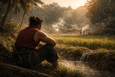 Matahari sudah setinggi bayangan pohon pisang. Sebuah pedukuhan tampak dari kejauhan. Asap dapur mengepul tipis di sela-sela pepohonan, sementara suara sayup lesung yang beradu dengan kokok ayam terdengar menjadi sesuatu yang dirindukannya. Tapi Swandaru tidak melangkah masuk. Dia ingin menepi, mengendapkan diri sebelum terhempas dengan segala yang tidak pasti. Di tepi parit kecil, Swandaru menyandarkan punggung lalu membiarkan angannya terseret bayangan kitab Kyai Gringsing.