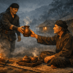 Ki Astaman menghampirinya lalu berhenti tepat di samping Ki Hariman, lantas duduk bersebelahan.